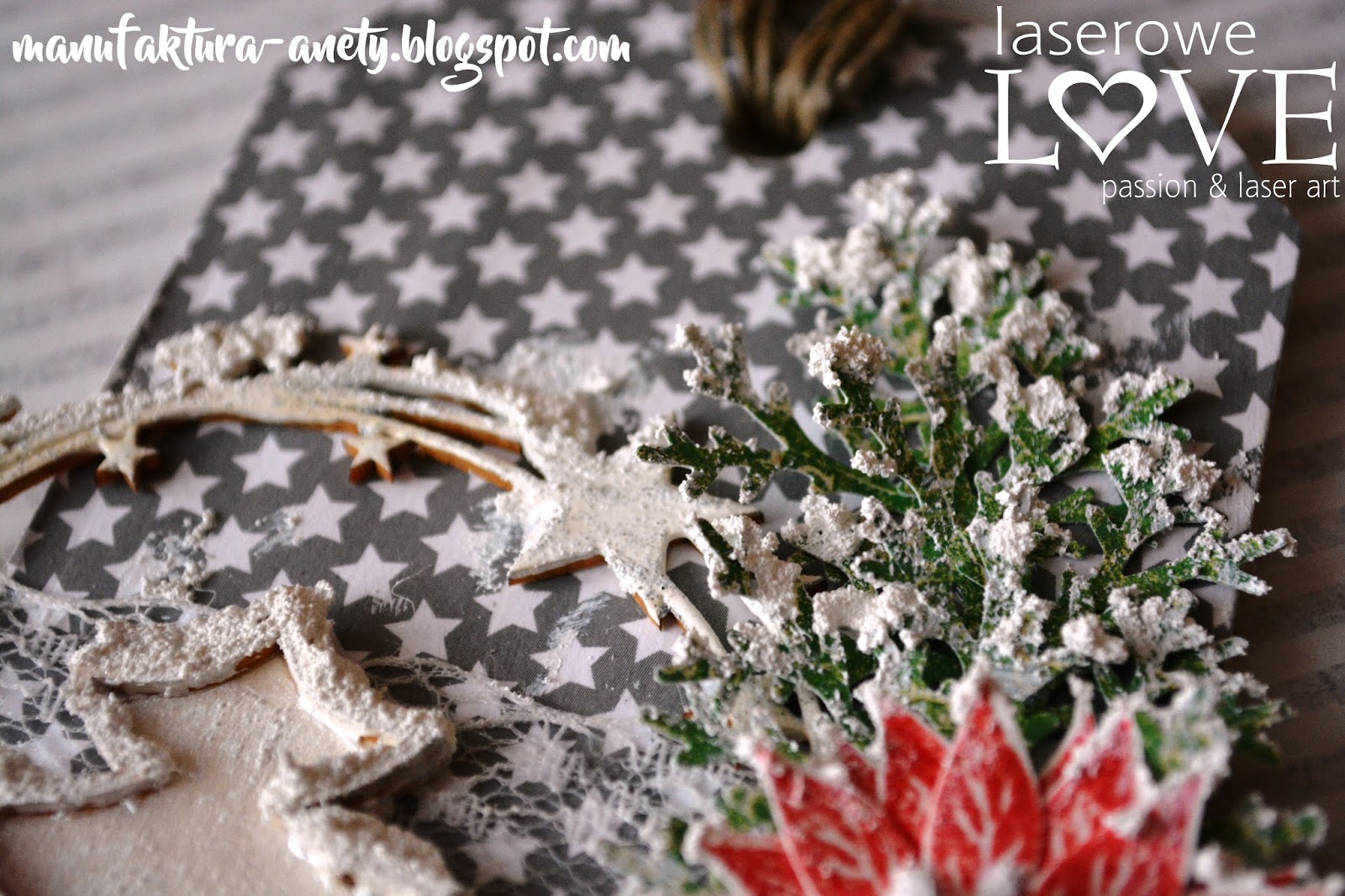 W ramach swojej inspiracji, przygotowałam tag z wykorzystaniem dwóch tekturek, które połączyłam w spójną całość. W roli głównej występują: ramka z gwiazdkami Le Astre oraz choinka Noel. Pokryłam je pastą śniegową DailyArt by nadać tej kompozycji prawdziwie zimowy klimat.